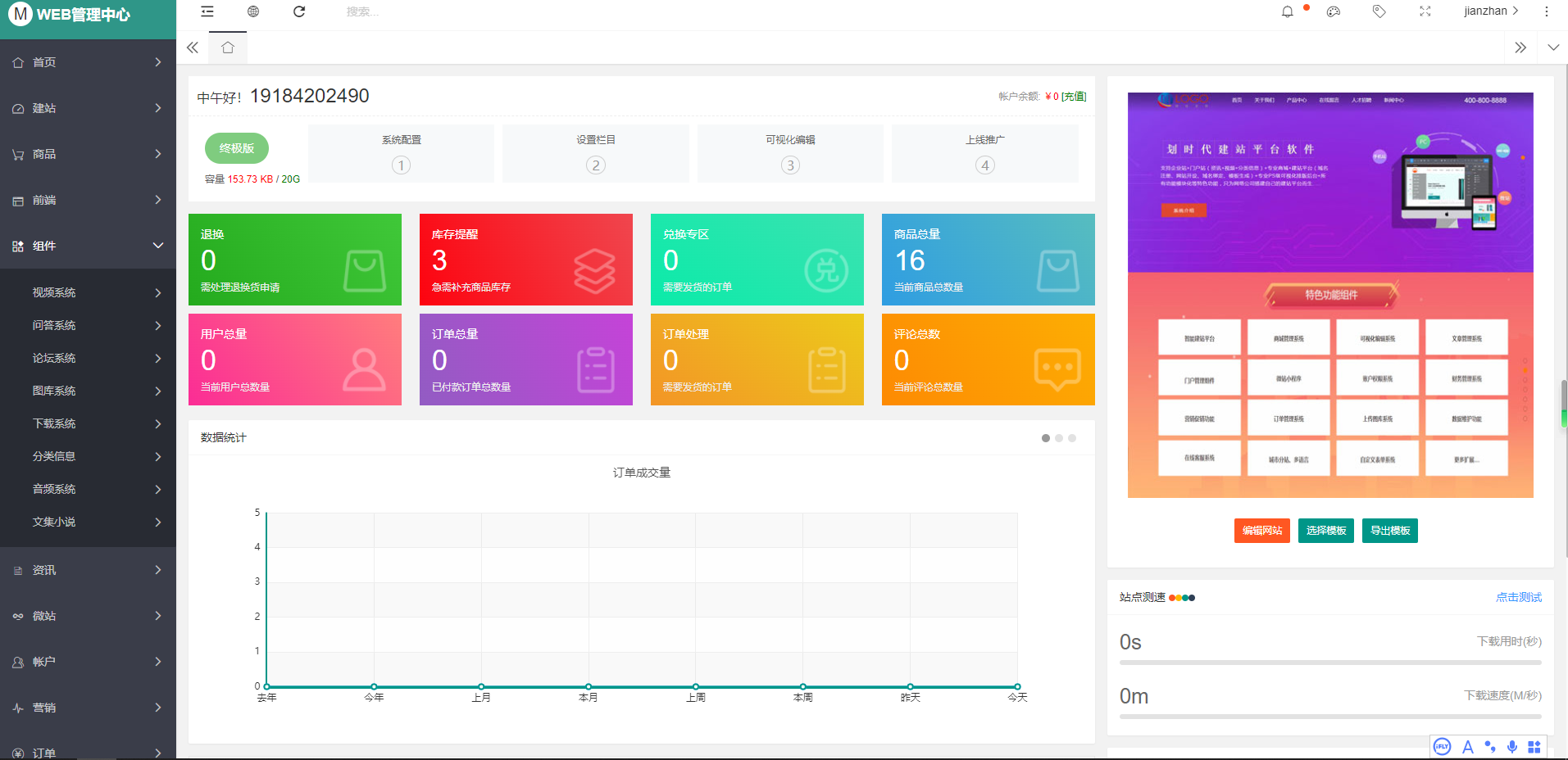 1、自助建站平台功能建站套餐产品开设,建站模板管理,西数域名系统,轻松开展建站业务。